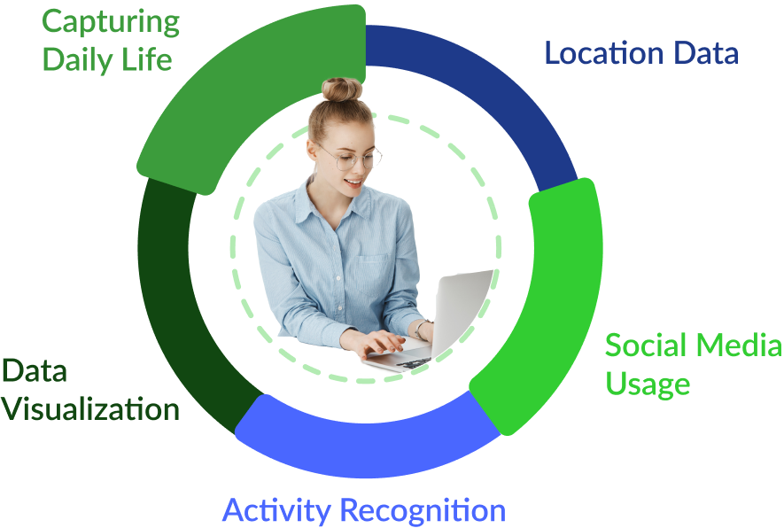 Passively capture participants' daily life events, including location, social media usage, and activities, through advanced smartphone sensing.